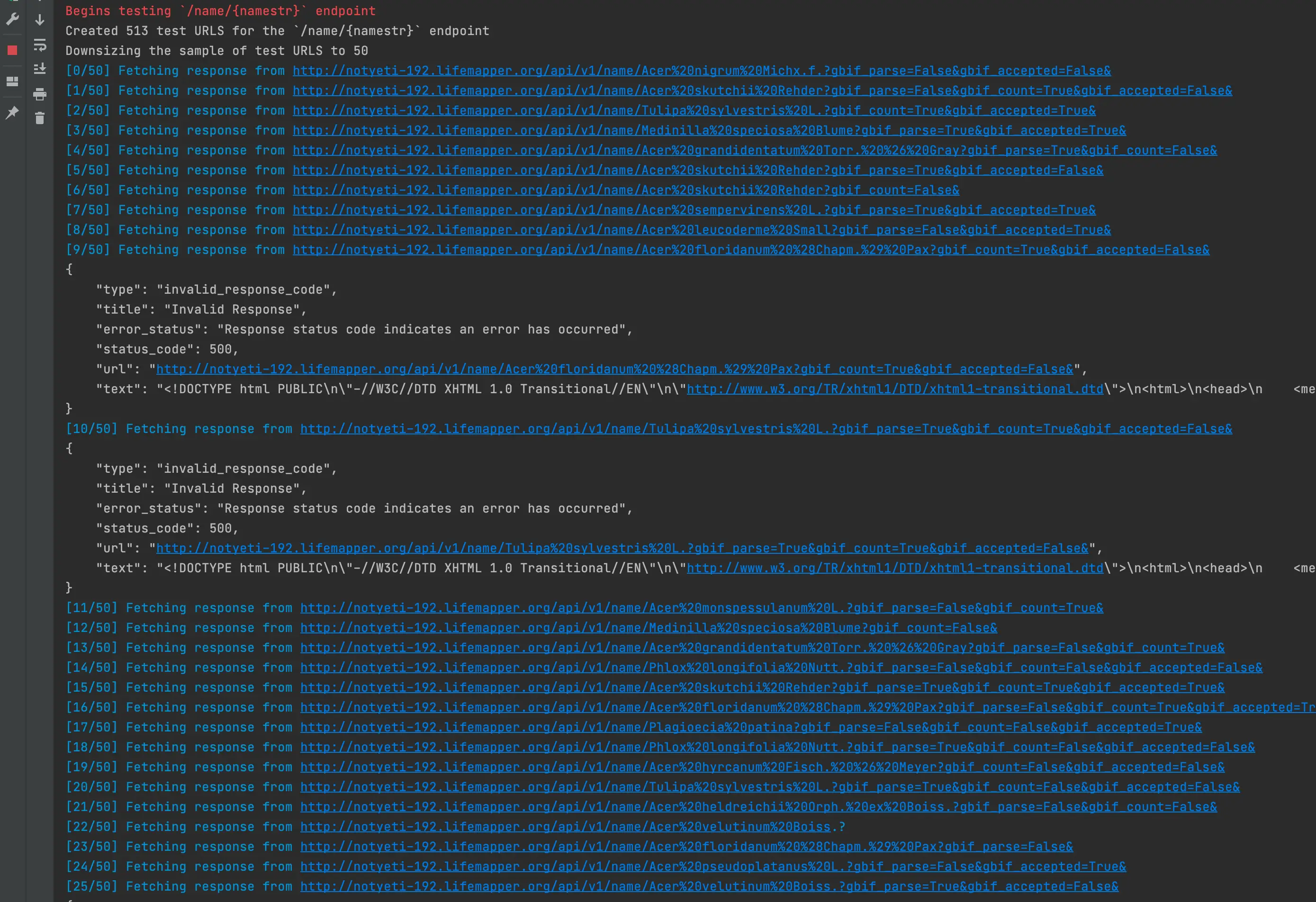 By default, the testing framework runs tests on all endpoints, prints any issues, and exits once done. For the purposes of continuous integration, it may be desirable to continuously run periodic tests, results of which are logged and failures are reported. My coworker developed a testing daemon and a scheduler just for that - LmTest.