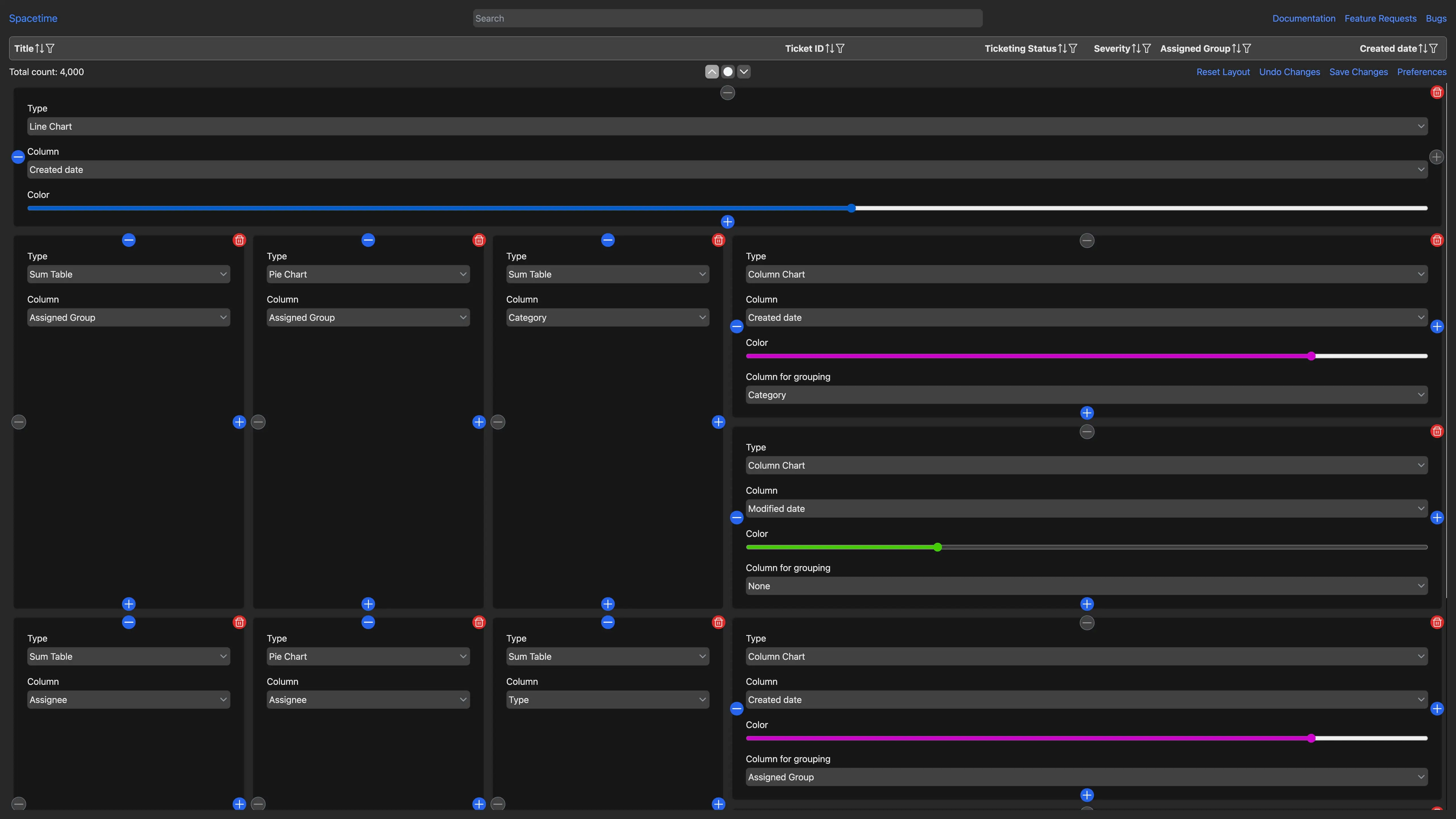 You also have an option of collapsing the table to focus on charts or collapsing the charts to see more tickets at once.