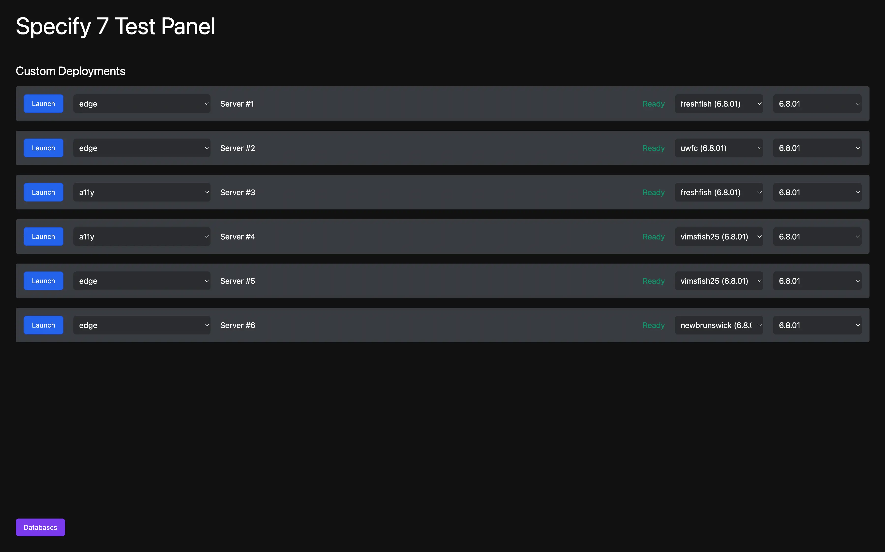 Test Panel is a Dashboard for configuring a cluster of docker containers of Specify 7, with an automatic deployment feature.