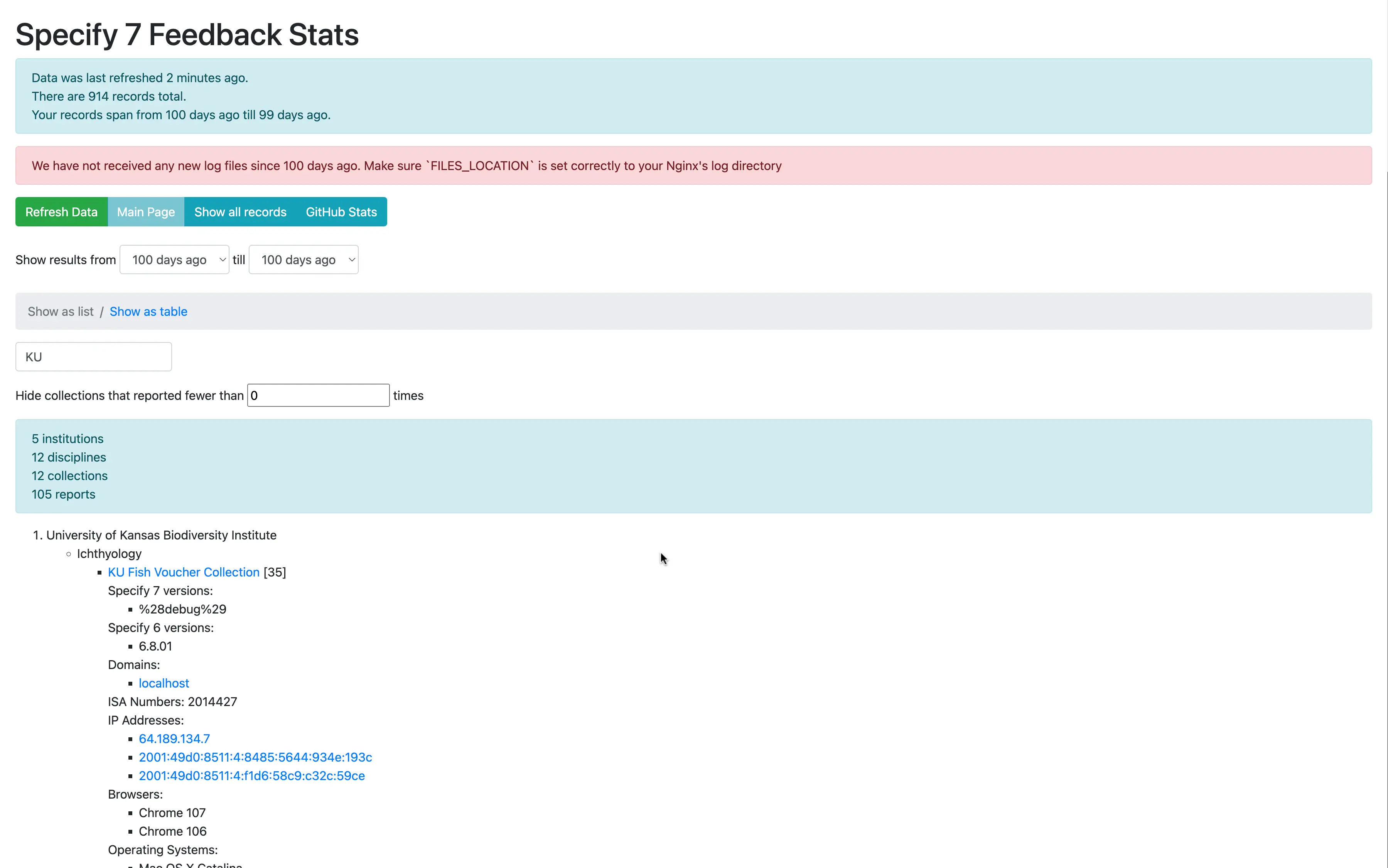 They already had the code for making Specify 7 ping our server on startup with telemetry information and storing that in a giant text file, but no way to visualize the data.