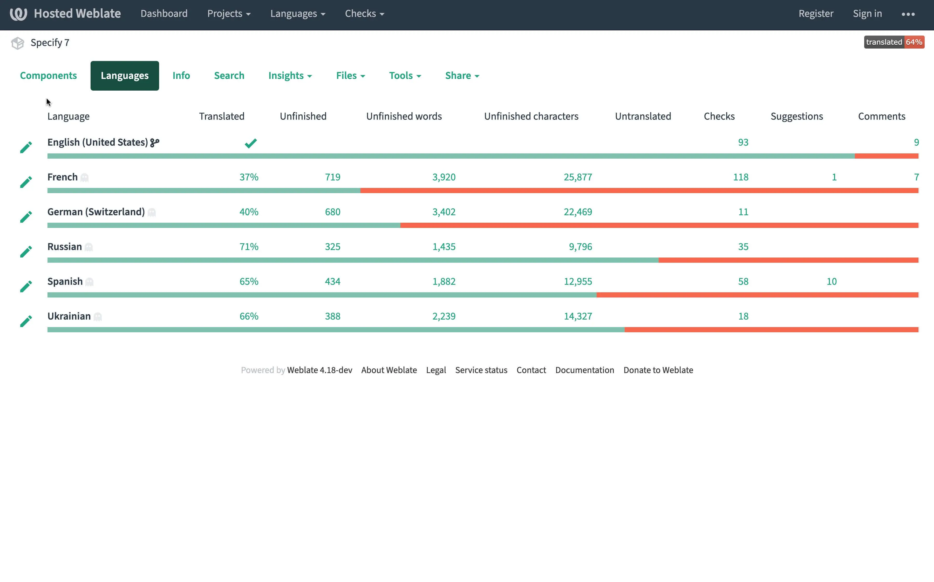On any changes to Specify 7 code, weblate is updated to receive new localization strings
